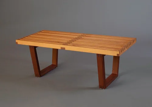 Classic Nelson bench in repurposed Old Growth Redwood and Western Cedar