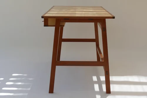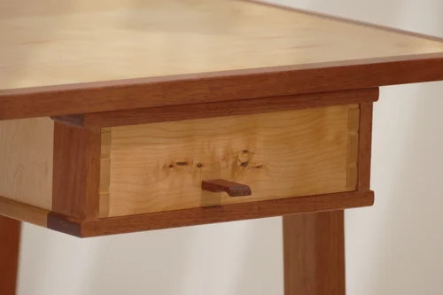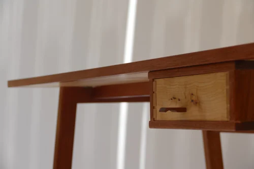 African mahogany base, maple drawer, and maple veneered surface.